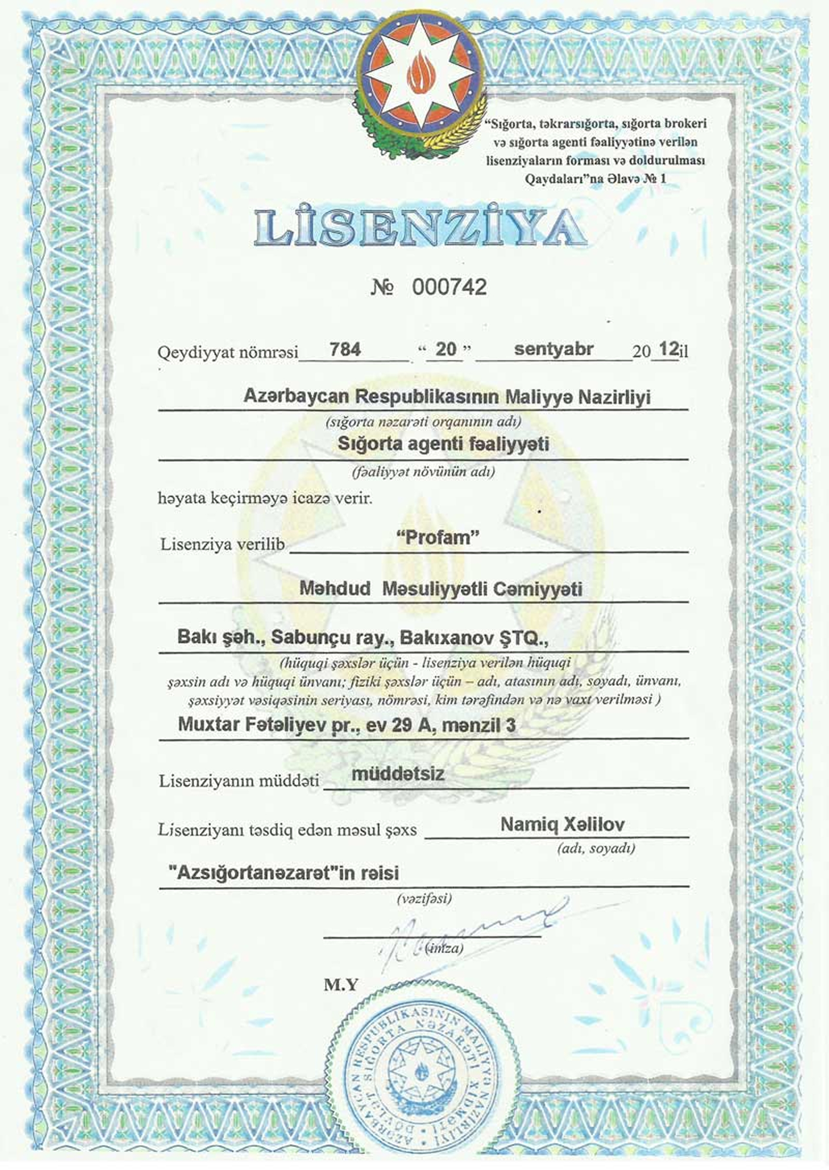 On 20.09.2012, the company obtained an insurance agent license!