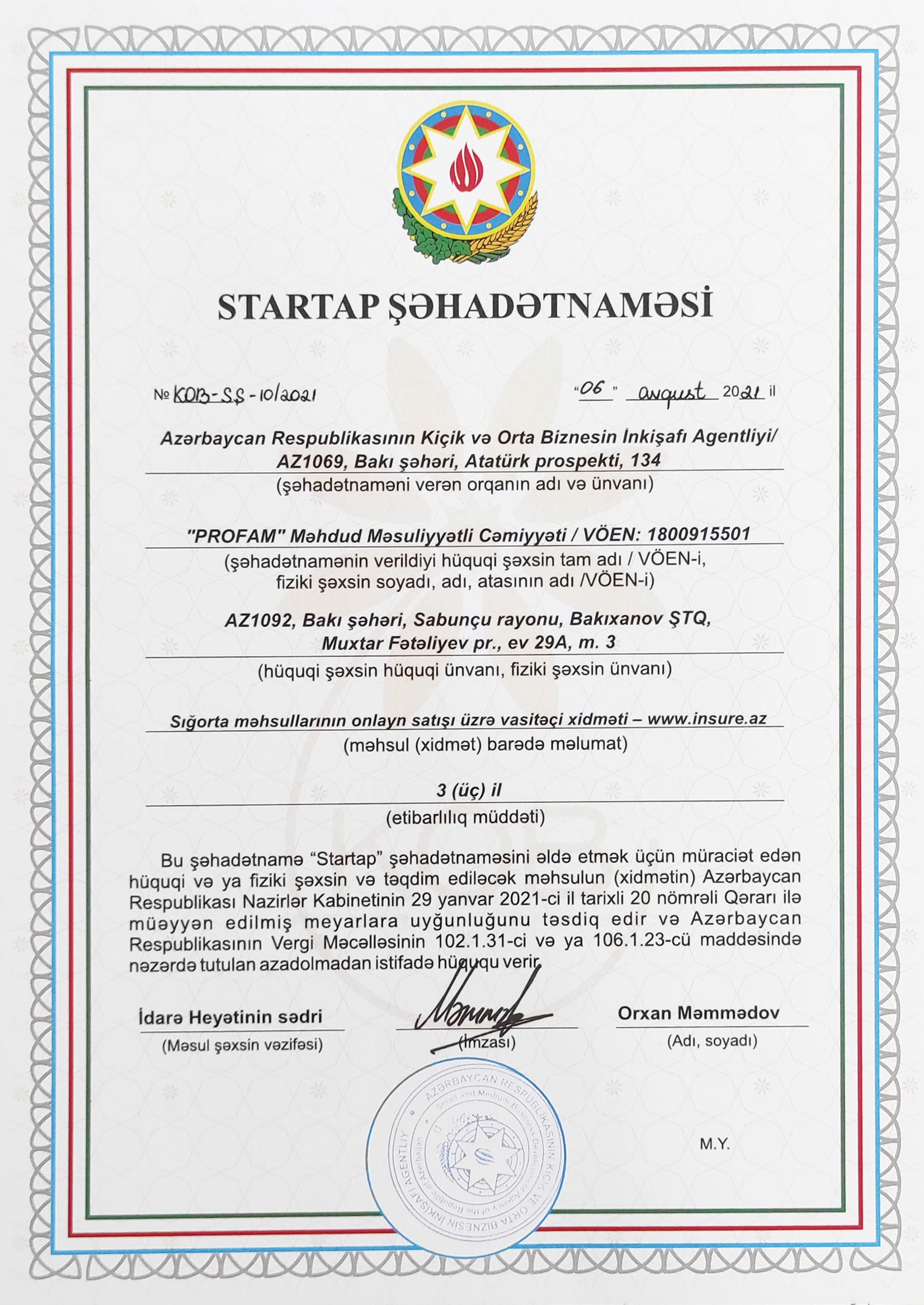 On 06.08.2021, the company received a startup certificate. More than 58,000 insurance contracts were sold from the portal, and more than 3.2 million insurance premiums were collected!